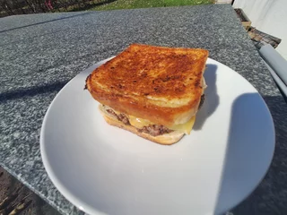 Die äusseren Seiten des Toastbrotes mit Mayonnaise bestreichen, die inneren Seiten mit der Schalottensosse bestreichen. Darüber 1 Stück Käse nach Wahl & das Burgerpatty